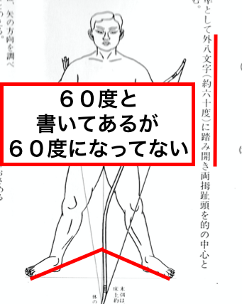 次に、狭い足踏みの人は、矢先があがってしまい、懸け口、手の内、両肩に狂いが出てしまうと解説されています。