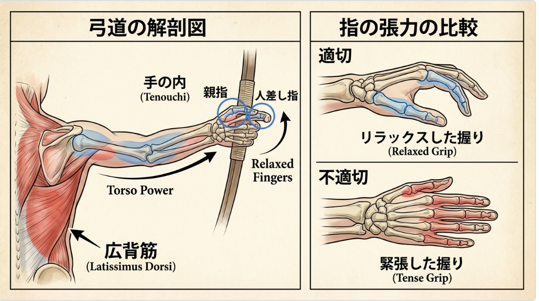 「強い弓を引こうとすると、どうしても腕に力が入ってしまう」