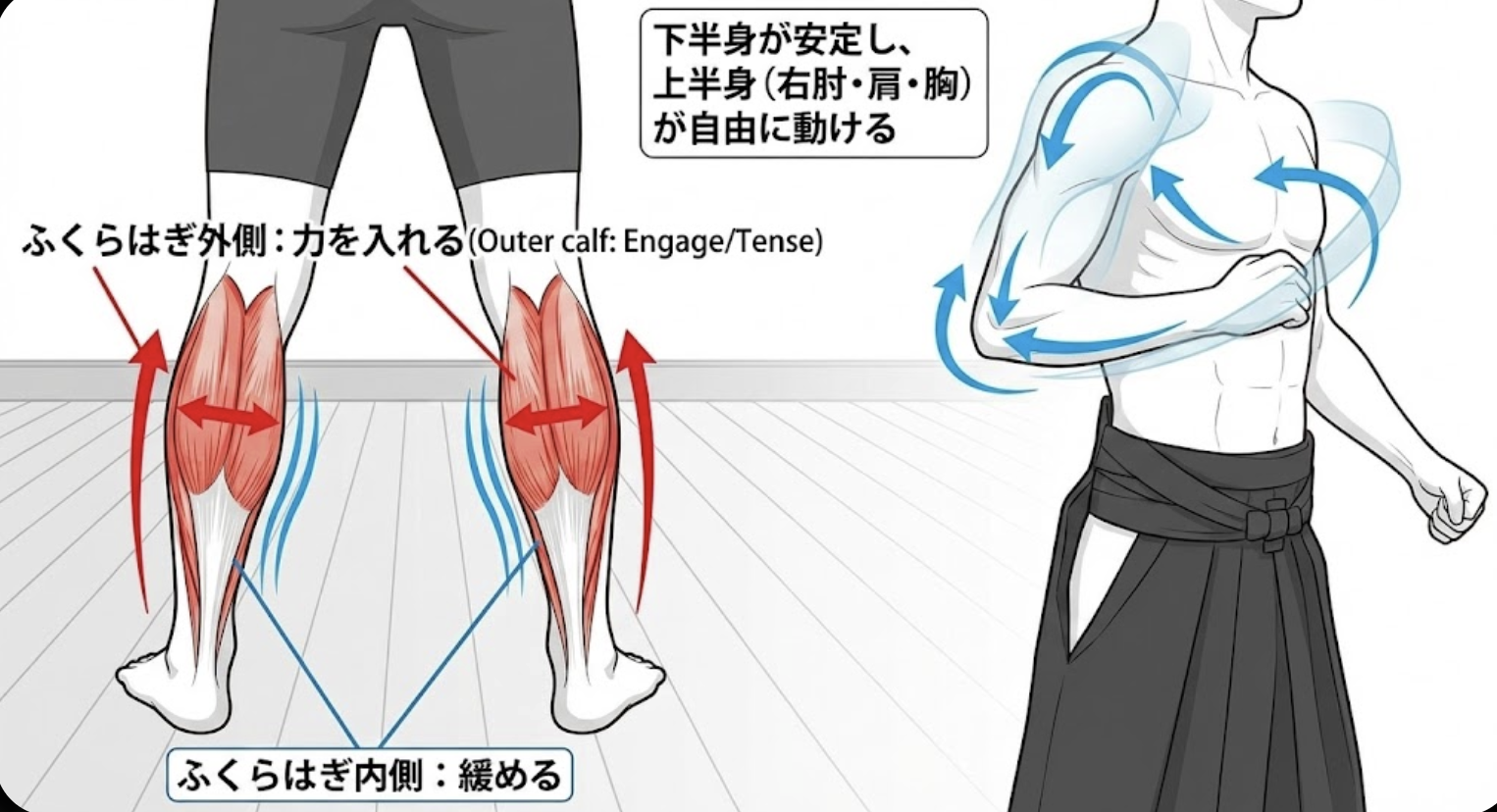 明日の稽古から、ぜひ「ふくらはぎの2分割理論」を試してください。