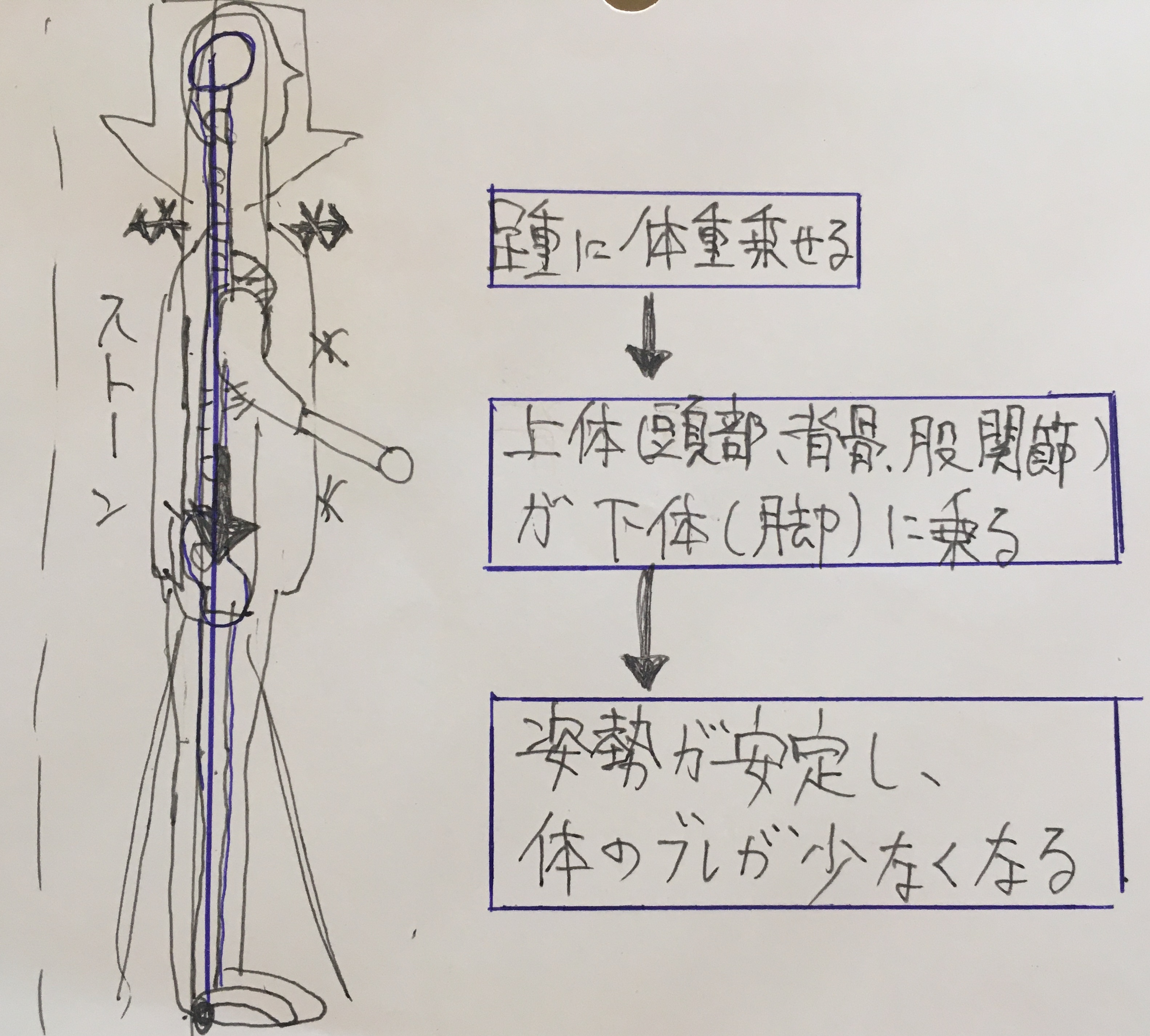 しかし、拇指球に体重を置くと、無意識に姿勢がぶれてしまうことが体の仕組み上わかっています。