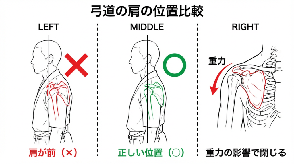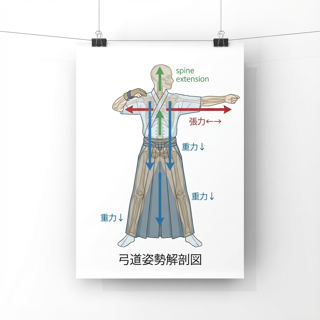 古来の弓道文献『武禅』にある「上下前後左右正等に伸びる」という言葉がヒントになります。
